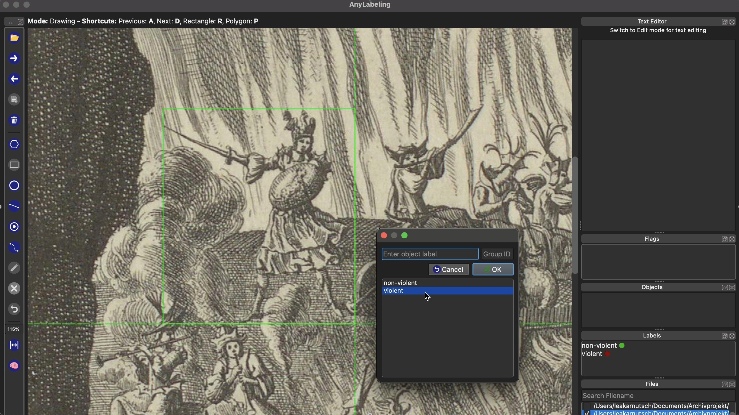 Abb.17: Aufnahme aus dem Prozess des Labelns mit "Anylabeling". Foto: Lea Karnutsch.
