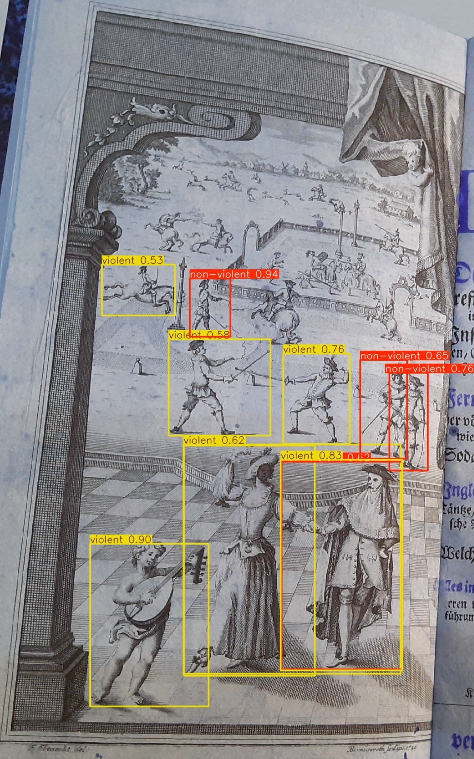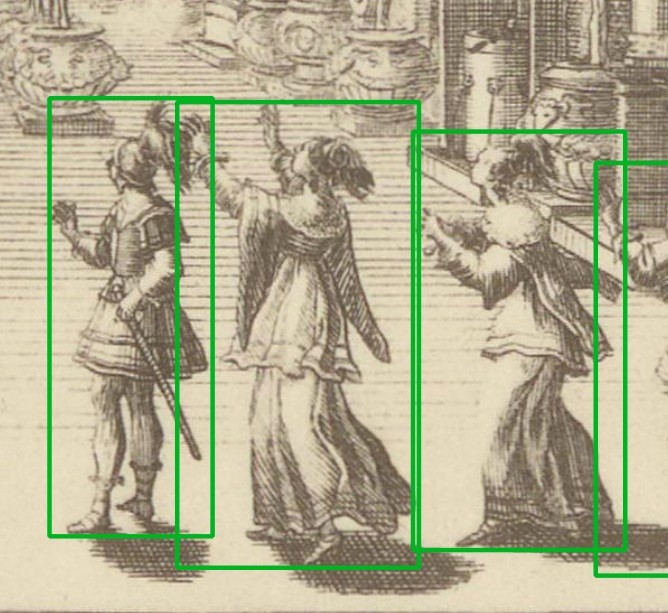 Abb.18: Detailaufnahme aus dem Labelingtool "Anylabeling". Foto: Lea Karnutsch. In dem Tool zu sehen ist: Bildtafel XLIII. In: Sechste Mappe. Courses de Testes et de Baque faites par le Roy – Denkmäler des Theaters. Inszenierung/Dekoration Kostüm des Theaters und der grossen Feste aller Zeiten. Wien/München: R. Piper & Co. Verlag 1925.