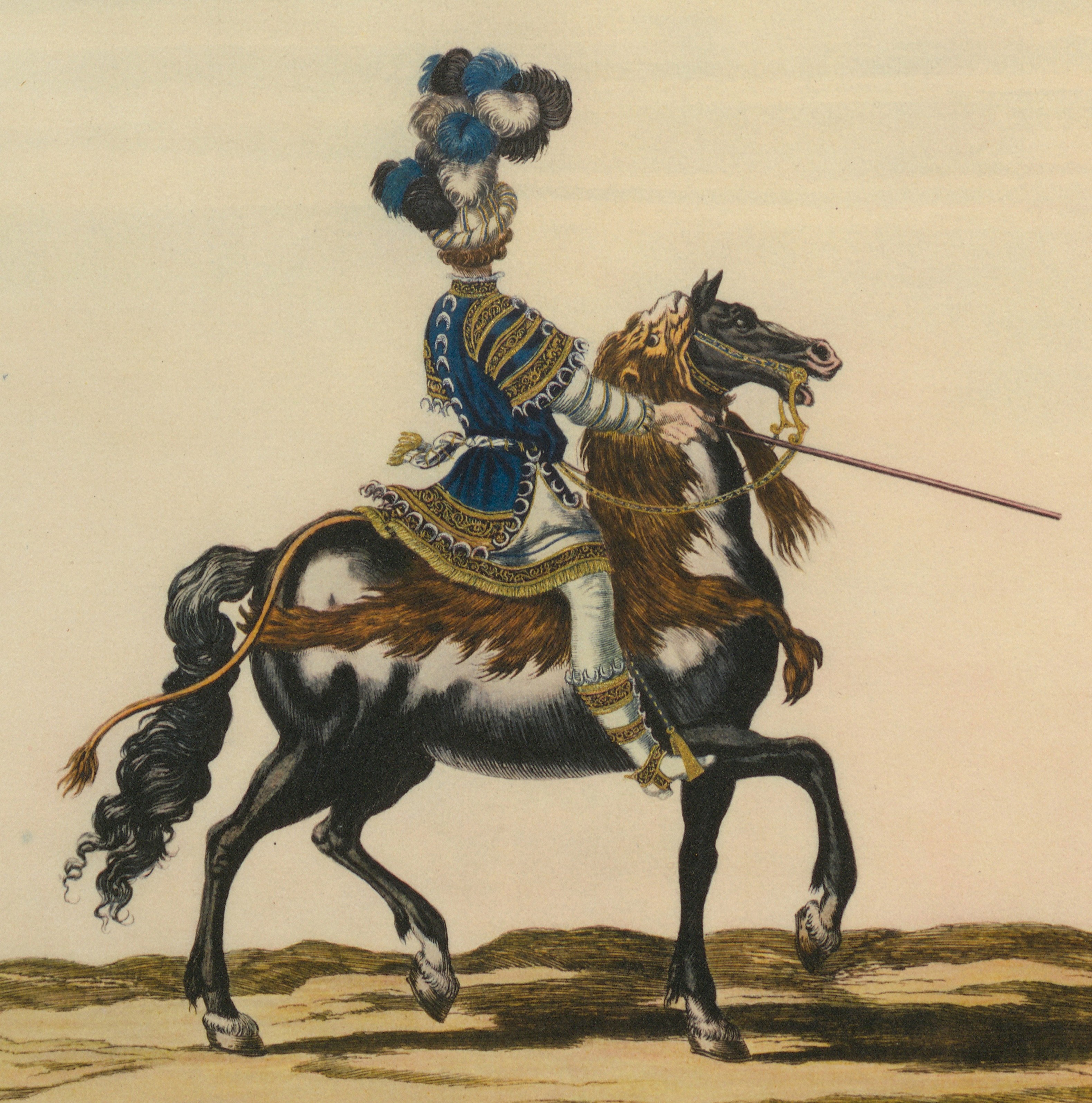 Abb.6: Analyseeinheit "Reitabbildungen". Bildtafel XII. In: Sechste Mappe. Courses de Testes et de Baque faites par le Roy – Denkmäler des Theaters. Inszenierung/Dekoration Kostüm des Theaters und der grossen Feste aller Zeiten. Wien/München: R. Piper & Co. Verlag 1925.