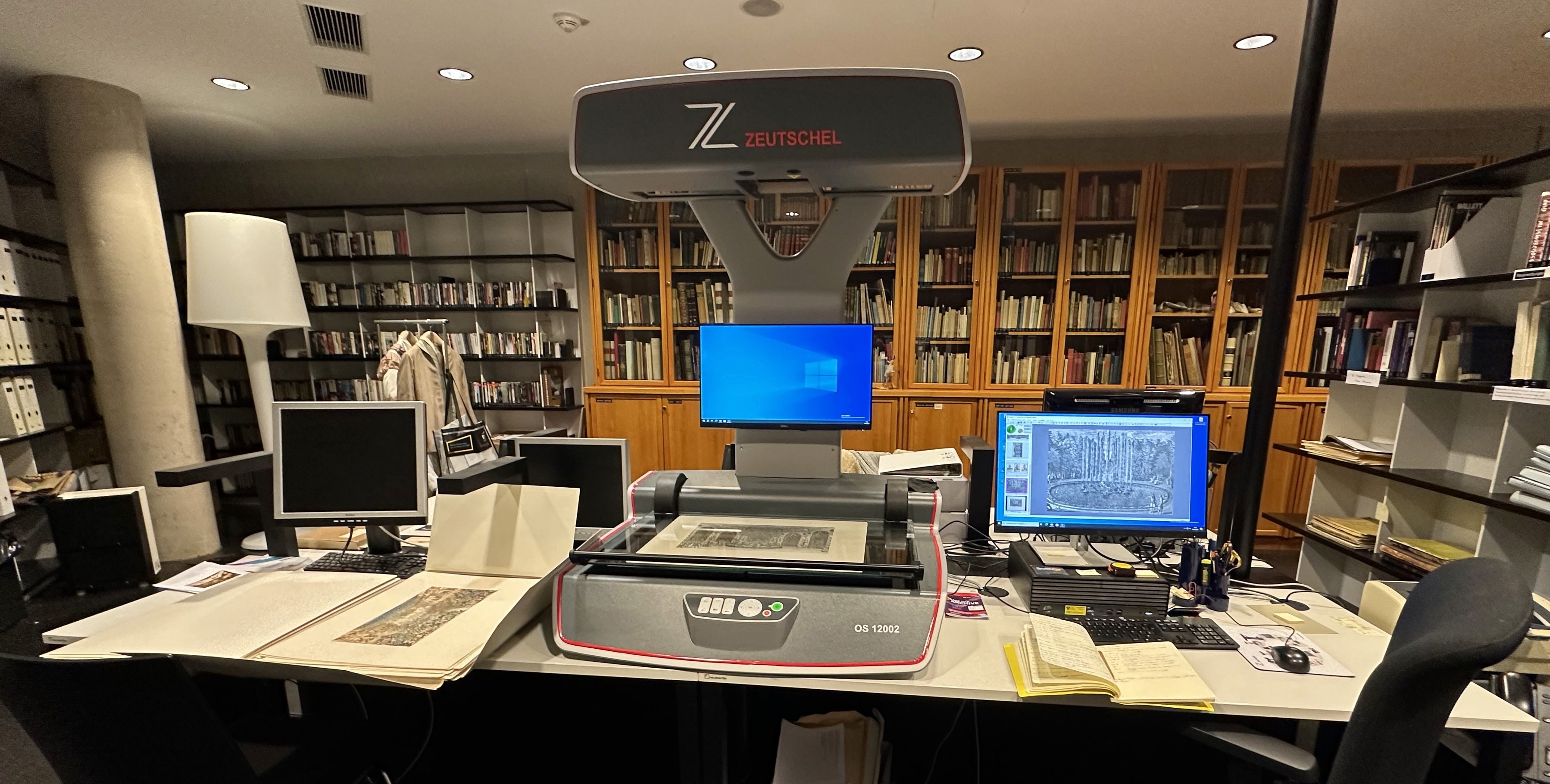 Abb.5: Arbeit mit dem Aufsichtscanner in den Derra de Moroda Dance Archives. Foto: Lea Karnutsch.
