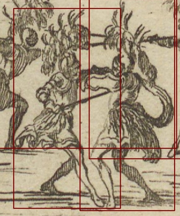 Abb.14: Detailansicht von Figuren, die als "violent" gelabelt wurden. Bildtafel XXII. In: Elfte Mappe. Feste des Sonnenkönigs – Denkmäler des Theaters. Inszenierung/Dekoration Kostüm des Theaters und der grossen Feste aller Zeiten. Wien/München: R. Piper & Co. Verlag 1930.